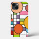 Det här telefonfodralet har en modern utformning av ett rutnät i mitten av århundradet, med vissa rektanglar i färgaden och cirklar överst i färg.
