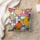 Dekorativ kudde har en modern utformning av ett rutnät i mitten av århundradet, med vissa rektanglar färgad i och toppcirklar i färg.