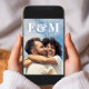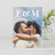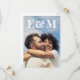 Med modern kan du spara bröllop-meddelandet som innehåller ditt monogram initialer i stor elegant, vit typografi som täcker fotot. Anpassa informationen om datum på baksidan i enkel typografi. Om du behöver göra fotots översta del mörkare för att vittexten ska visas finns det en övertoning för mörken som du kan aktivera genom att redigera i designen verktyg.