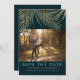 Modern Strand Palmguld Teal Grön Tropisk Bröllop Spara Datumet