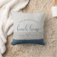 Modern strandhus familjenamn borst skrift blå kudde