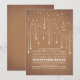 Modernt bröllopsinbjudande med stjärnströdda ljus illustrerade på en brun kraftpapperstextur. Skrivet med moderna typsnitt, ser romantiskt och djupt ut. Om du planerar ditt bröllop med en bakgrund av gnistrande ljus och chic modern bröllopsdesign, kommer denna inbjudan perfekt att representera din speciella bröllopsdag.