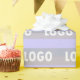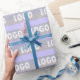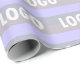 A logo wrapping paper for small business and corporations to feature their brand set against a striped background featuring light grey, lavender, periwinkle, and purply blue hues. Be it for a birthday ore retirement at the workplace or packaging special gifts for customers, this offers an elegant wrapping option.