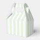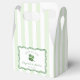 Stylish St Patrick's Day bridal shower or wedding favor boxes with a background of pale green and white stripes with a modern hand-drawn wavy border, personalized text and of course a four leaf clover (shamrock). All colors of all elements (except the shamrock) can be changed by you from inside the design tool.