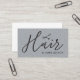 Affärskortmall för anpassade i elegant med svartsaxerikon/struktur grått-bakgrund och fet handskriftstext. Modern ren design, perfekt för hårstylist, hårfrisör.