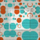 Ylle bollar i pulserande orange och blått nyanser. En lekfull modern representation av struktur och färg i mitten av århundradet.