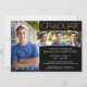 Modern fotoinbjudan med studentfest som innehåller 4 bilder och snyggt typografi i ditt val av text, grafik och färg i bakgrunden (visas i svart, guld och vitt). ASSISTANS: Om du vill ha hjälp med designändringar eller anpassning, överföra designen till en annan produkt eller om du vill samordna produkter kontaktar du designern INNAN ORE ORDERING via Zazzle-Chatta eller makeitaboutyoustore@gmail.com.