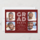 Modern GRAD-inbjudan till studentfest för fotokollage. Utformningen har 4 kvadratbilder av graden, dekorativa bokstäver och en enkel party-mall som är enkel att anpassa. Den röda bakgrunden kan ändras till valfri färg.