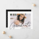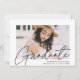 Fira graderingen med vår snyggt fotografi av studenten. Studenten-meddelandet visningar student-fotot med "Student" i ett svart, modernt kalligrafskript. Anpassa det moderna studenten-tillkännagivandet genom att lägga till student namn, namn och studenten. Tillkännagivandet återgår till att ha ett trendig svart och vitt prickat geometriskt mönster. Utformningen är perfekt för både high school och College studenter.