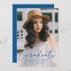 Fira graderingen med vår snyggt lodrät fotot studenten. Studenten-meddelandet visningar lodrät student med "Student" i ett blått, modernt kalligrafskript som täcker över. Anpassa det moderna studenten-tillkännagivandet genom att lägga till student namn, namn och studenten. Tillkännagivandet återgår till att ha ett trendig blått och vitt prickat geometriskt mönster. Utformningen är perfekt för både high school och College studenter.