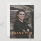 Ett studenten-fototack från trendiget med ett "tack" i nyare ljus-teckensnitt som täcker fotot. Anpassa med dina uppgifter om studenten och personliga meddelanden på motsatt sida.