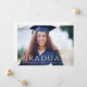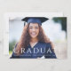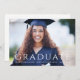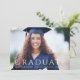 Ett enkelt, modernt kort för att tillkännage ett mycket stolt ögonblick. Framsidan har STUDENT i enkel vit typografi och studenter-fotot. Anpassa till student namn, högskoleår och skola. Den omvända sidan tillåter ett personligt meddelande