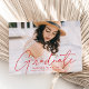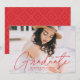 Fira graderingen med vår snyggt fotografi av studenten. Studenten-meddelandet visningar student-fotot med "Student" i ett modernt kalligrafiskript som täcker över. Anpassa det moderna studenten-tillkännagivandet genom att lägga till student namn, namn och studenten. Tillkännagivandet återgår till att ha trendiget rött och vitt prickat geometriskt mönster. Utformningen är perfekt för både high school och College studenter.