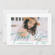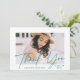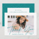 Modern foto-studenten-tack för ditt kort med studenten-fotot med "tack" i ett handskrivet teal-calligraphy-skript-överlägg. Anpassa framsidan av det tackkort som du ger genom att lägga till student namn. Fototacket som du återgår till för att visa ditt anpassningsbar-meddelande med trendiget teal och vit prickad geometrisk mönster. Ta bort anpassningsbarnas meddelande om du vill skriva ditt eget.