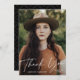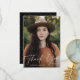 Med det moderna fotot-studenten-kortet med student-lodräts foto med "tack" i ett handskrivet, vitt calligraphy-skript-överlägg. Anpassa framsidan av det tackkort som du har lagt till student namn och studenten. Fototacket som du återgår till för att visa ditt anpassningsbar-meddelande med trendiget svart och vitt prickat geometriskt mönster. Ta bort anpassningsbarnas meddelande om du vill skriva ditt eget.