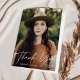 Med det moderna fotot-studenten-kortet med student-lodräts foto med "tack" i ett handskrivet, vitt calligraphy-skript-överlägg. Anpassa framsidan av det tackkort som du har lagt till student namn och studenten. Insidan av det vikta studenten-tacket som du använder på kortet har ett trendig svart och vitt prickat geometriskt mönster till lämnat med ditt skrivna eller handskrivna meddelande på högerna.