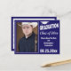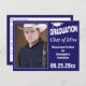 Den moderna stads- och återföraren studenten sparar datumkortet. Lägg till ditt favoritfoto i porträtt för att skapa ditt eget studenten-fotokort. Studenten-kort kan användas för att spara datumet för en ceremoni i studenten, fotoannonsering, tackkort eller studentfest inbjudan. Snyggtens blå och vita design komplett med en studentmössa och ett handtag. Grattisar till din examen!