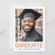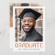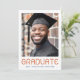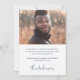 Modern studenten-meddelandekort med ditt foto och texten "student" i ett modernt typsnitt med året och namn under. Tack för ytterligare foto och anpassningsbar på baksidan. Mörk blått text på vit bakgrund.