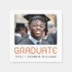 Moderna studenten-blöjor med ditt foto och texten "student" i ett modernt typsnitt med året, skolan namn eller namn nedan. Mörk blått text och orange på vit bakgrund.