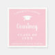 Moderna studenten-blöjor med "Grattisar" och en graderingshatt ovanför student namn i ett elegant tjockt manusformat tillsammans med klassåret och namn i skolan i vitt över en rosa. Bakgrunden kan ändras till valfri färg. Dessa servetter är ett underbart sätt att göra studentfesten personligt rörd.