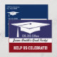 Skapa ditt eget studenten spara datum, inbjudan, meddelande, tack vare dig eller något annat vykort. Modern och enkel grafisk konsdesign. Ha roligt att välja färg och typsnitt. Underbar för högskola, mitten-skola, uni, universiteten, högskola, tandskola, handelsskola, militärskola, sjuksköterskeskola, rättsskola, gymnasium och annat studenten. Utformningen har en vit studenten-hatt eller ett styrbord.