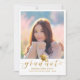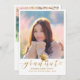 Skicka ett unikt fotomeddelande till din familj och dina vänner i personligen till studenten för att wow dem. Den här moderna malldesignen innehåller ditt foto som är inramat i vitt och nedanför i faux guld-skriptet är ord "Student" med ditt namn, din skola och ditt år för att anpassa det efter en svart studentmössa. På baksidan av kortet finns ett andra foto med information om studenten från föräldrar. Designad av Susan Coffey.