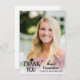 Med fototacket i anpassningsbar studenten får du ett foto, TACK accentuerat med en studentmössa, student namn i ett modernt skript och klassår student och/eller skolår namn på framsidan i ditt val av färg för texten och hatten på ett vitt filmöverlägg. På baksidan kan du skriva ut ditt tackmeddelande eller ta bort exempeltexten för att lämna området tomt för handskrivna anteckningar om uppskattning. ALTERNATIV: Provet visas i 4,5 x 6,25-tumsmodellen (storlek 4,5 x 6,25 tum), andra storlekar finns tillgängliga. ASSISTANS: Om du vill ha hjälp med designändringar eller anpassning, ändra storlek på färg, flytta designen till en annan produkt eller om du vill samordna objekt kontaktar du designern INNAN ORDERING via Chattan Zazzle MESSAGE eller e-post makeitaboutyoustore@gmail.com.
