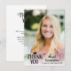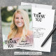 Med fototacket i anpassningsbar studenten får du ett foto, TACK accentuerat med en studentmössa, student namn i ett modernt skript och klassår student och/eller skolår namn på framsidan i ditt val av färg för texten och hatten på ett vitt filmöverlägg. På baksidan kan du skriva ut ditt tackmeddelande eller ta bort exempeltexten för att lämna området tomt för handskrivna anteckningar om uppskattning. ALTERNATIV: Provet visas i 4,5 x 6,25-tumsmodellen (storlek 4,5 x 6,25 tum), andra storlekar finns tillgängliga. ASSISTANS: Om du vill ha hjälp med designändringar eller anpassning, ändra storlek på färg, flytta designen till en annan produkt eller om du vill samordna objekt kontaktar du designern INNAN ORDERING via Chattan Zazzle MESSAGE eller e-post makeitaboutyoustore@gmail.com.