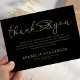 Lägg till lite lyx i studenten med vår elegant och vårt sofistikerade tack du kort. Den svarta bakgrunden i snyggten parad med det moderna skriptteckensnittet fångar utan problem din tacksamhet. Personlig med ditt namn, din skola, ditt år och ett hjärtligt budskap........................................................................................................................................................................................