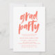 Inbjudningar till snyggt och modern studentfest som innehåller ett handmålat penselteckensnitt för trendig och korallpenseldrag för abstrakt. Anpassa inbjudningskorten för studentfest av chic med information om anpassningsbar studenten för en titt som imponerar på gästerna!