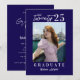 Den här marinblåa färgadens moderna minimala studentfest-inbjudan innehåller både skript och sans serif-typografi. Den här parningen av flytande skript och moderna sans serif skapar en balans i snyggten, med skriptet som tillför sofistikering och sans serif som garanterar tydlighet och läsbarhet. Ladda upp ditt favoritfoto.