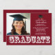 Starta evenemanget från högerna med vår moderna inbjudan till studentfest med rött foto i student. Utformningen har orden "student" i vitt på en maronbakgrund med ett gradlock med takdrag. Perfekt studenten inbjudan till högskoleexamen i studenten eller högskoleexamen. Fyll bara i informationen, lägg till ditt foto och du är redo att gå. Besök vår butik för en stor mängd studentkort för trendig och snyggt i ett stort antal färger!