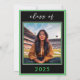 Den här inbjudan till studentfest är modern och chic och kombinerar klassiskt svart och vitt med ljusgrön kalk. Det är en minimal design som är enkel och roligt att fira studentens stora dag. Baksidan visningar ditt student favoritfoto. Skapat av Farmhouse Press.