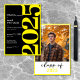 Den här inbjudan till studentfest är modern och roligt och kombinerar klassiskt svartvitt med accenter med ljus gult. Det är en minimal design som är enkel och roligt att fira studentens stora dag. Baksidan visningar ditt student favoritfoto. Skapat av Farmhouse Press.