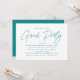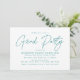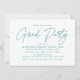 inbjudningskort för roligt och modern studentfest som innehåller "Grad Party" i ett trendig-turkos/teal-skript med information om studentfesten som visas nedan. Den enkla studentfesten inbjudan går tillbaka till visningen ett sött teal och vitt prickat geometriskt mönster.