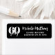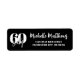 Modern svart-vit adressetikett för 60-årsdag. En enkel och modern design med "60" i fetstil och "Sixty" i skrivstil till vänster, medan mottagarens namn visas i skrivstil till höger med adressen i en ren sans-serif-teckensnitt under. Layouten håller allt tydligt och lätt att läsa, med en polerad svart bakgrund och vit typografi. Bakgrunden, teckensnitten och layouten kan anpassas för att passa din stil.