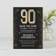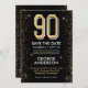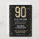 Denna fantastiska 90:e födelsedagsfest för svart och guld manar Rädda datumkortet med nummer 90 i guld med moderna typsnitt och guld glitter sidor skulle vara perfekt för att be människor att lägga detta speciella datum åt sidan för människan i ert livs kommande 90:e Födelsedagsfest. Det är traditionellt och klassiskt samtidigt som det är färskt, modernt och contemporary. Om du vill visa dina unika sparade datumkort väljer du "Anpassa den här mallen" och skriver i informationen. Det är lätt toppen!