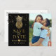 Modern Black Guld Pineapple Photo Save Date Postcard