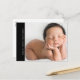 Bebis födelseannons, foto. Svart bakgrund. Modern.
