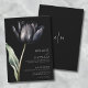 Elegant Modern Monogram Black Tulip Blommigt bröllopsinbjudan. En modern och minimal bröllopsinbjudan i eleganten har en enda svart, vattentorkad tulpanblomma med grönt och löv! Den svarta bakgrunden bidrar till elegans och mystik, men den fungerar också med vit bakgrund och svart typsnitt om du vill. Fungerar för en modern contemporary bröllop, eller till och med för en gotisk vibe i fall och vinter. En blandning av enkelt typsnitt och en vacker manustypografi gör detta både till elegant och roligt. Du kan byta ut hela teckensnittet färg. På baksidan är ett enkelt inledande monogram. Finns som en utskriven inbjudan eller som ett hämtningsbart digitalt inbjudan som du kan skicka i e-post eller skriva ut lokalt!