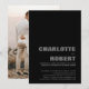 Bjud in dina vänner och nära och kära med denna stilrena minimalistiska svarta med grå text bröllopsinbjudan med ett foto av det nygifta paret på baksidan för att dela din glädje i ditt senaste äktenskap. För bästa resultat anpassa din valda bild för baksidan av inbjudan till ett 5 x 7-förhållande.