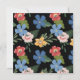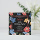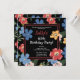 Modern, roligt och elegant 60:e födelsedagsfest inbjudan med ett enkelt men vackert blommönster med vackra röda, blå rosa och gula blommor, kompletterat med moderna botaniska gröntar, med svart bakgrund. Modern anpassade-typografi för födelsedagsfest inbjudan-detaljer Baksidan av inbjudan har samma blommönster, även på svart bakgrund.