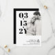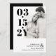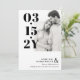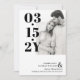 Modern typografi sparar datumet med ditt bröllop-datum skrivet med stora fet svart siffror bredvid ett foto av dig och din framtida make/maka. Lägg till namn och ytterligare information i elegant typsnitt. En ren minimalist sparar datumkortet.