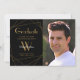 Detta moderna och elegant studenten-annonskort med ett foto och ett första brev-monogram med geometrisk mönster på guld och svart bakgrund ser verkligen ut att kunna presenteras för ge till familj och vänner för att kunna tillkännage en kommande namn-dag. Underbaren sak här är att man kan göra det personligt genom att lägga till namn, inledning och text. Fotografi © Storytree Studios, Stanford, CA