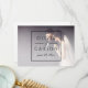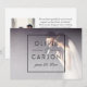 Moderna och stilrena falska vellum svarta och vita bröllops korts tack meddelanden har en enkel och minimalistisk svart typografisk och geometrisk monogram design foto överlägg på framsidan och elegant anpassat tack meddelande som kan anpassas på baksidan av kortet, bredvid ett andra foto av bruden och brudgummen.
