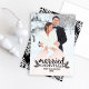 Snyggtens helgdag-fotokortsdesign för vinterbröllop ger dig bröllop porträtt med en svart övertäckningsdesign för "gift jul". En andra bild och anpassningsbar visas på baksidan av kortet. Modern gräs träd och bergssprickor accentuerar utformningen.