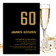 En sofistikerad modern minimalistisk svart och guld inbjudan till 60-årsfest.