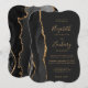 Den vänstra kanten på denna eleganta moderna bröllopsinbjudan har en svart akvarell-agat kant med falskt guldglitter. Den anpassningsbara texten kombinerar guldfärgad handskrift, kopparstick och kursiv typsnitt på en svartaktig bakgrund. Baksidan har en matchande svart och guld-agat design.