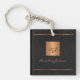 Svart lädernyckelkedja med lyxfärg elegant, med en guld glitter monogrammad kvadrat och personlig namn namnteckning.