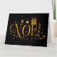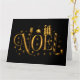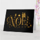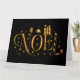 Ett mycket contemporary svart julkort med ett svart tema och guld. Ord i Noel i guld (faux) metall har dekorativa roligtar som små gyllene presentboxar, julhatt, candy cane och stjärnor och guld snöflingor mellan guld. Det finns en enkel hälsning inuti, "God jul som kan anpassas till den spelar ingen roll man önskar, eller naturligtvis bara lämnas som den är.